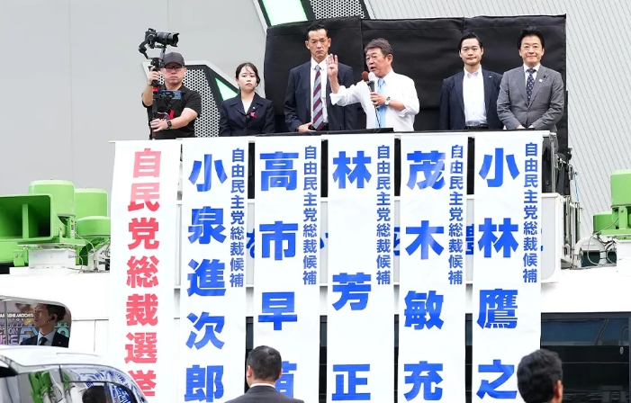 2025年10月4日,日本执政党自民党将举行党总裁选举。现任农林水产大臣小泉进次郎、前经济安保大臣高市早苗、原经济安保大臣小林鹰之、前自民党干事长茂木敏充,以及现任官房长官林芳正,五人同台竞争。